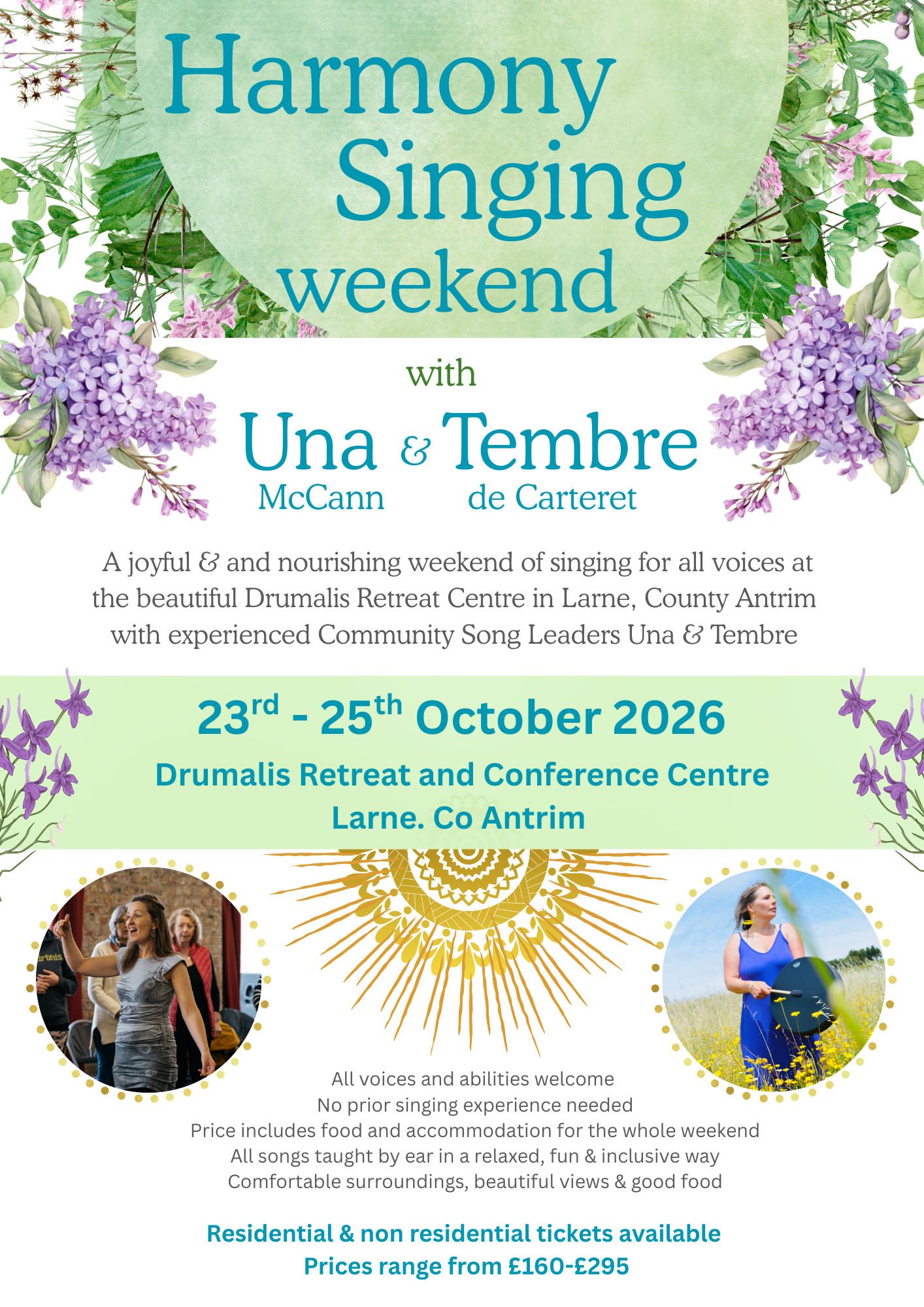 Harmony Singing weekend with Una McCann & Tembre de carteret